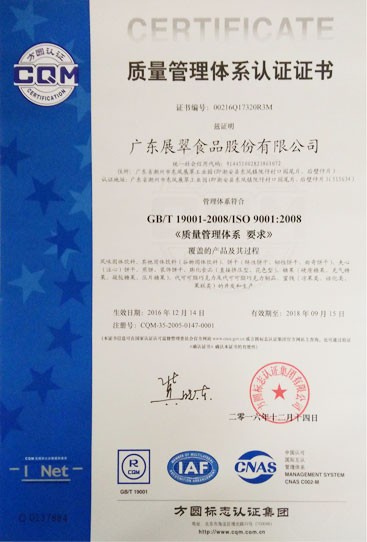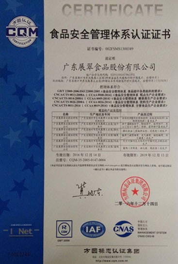 食品安全管理體系認(rèn)證證書