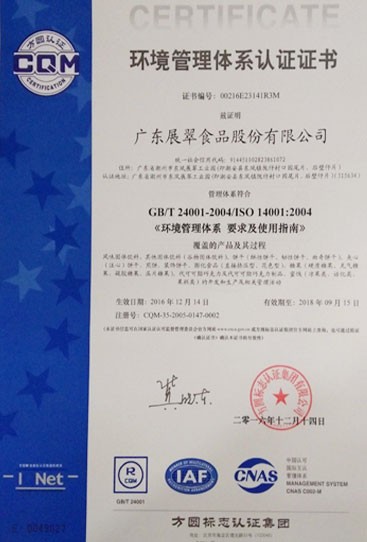 環(huán)境管理體系認(rèn)證證書