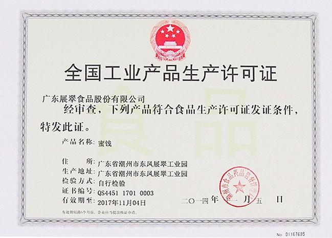 全國工業(yè)產(chǎn)品生產(chǎn)許可證(蜜餞)