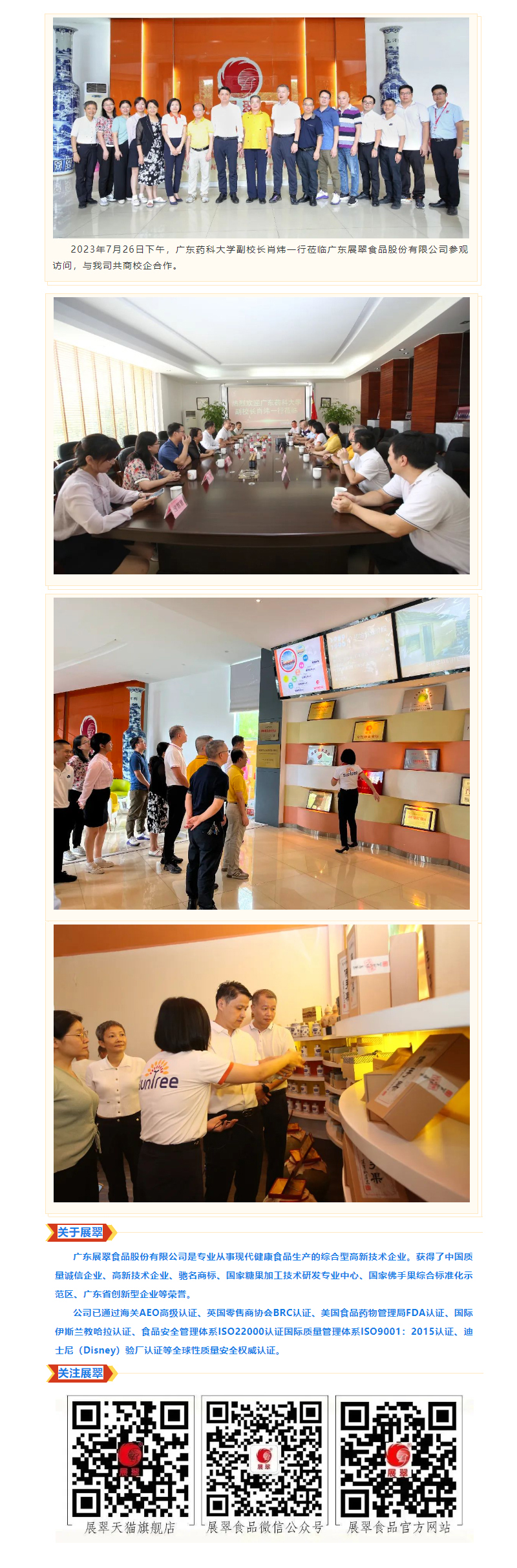 廣東藥科大學(xué)副校長肖煒一行蒞臨展翠公司參觀訪問