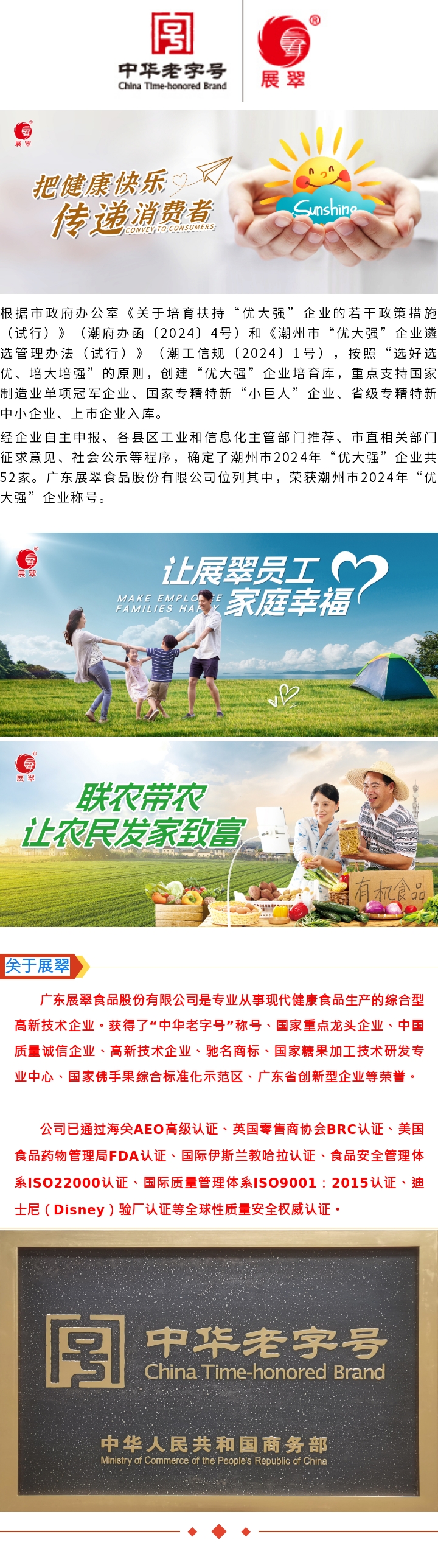 喜報(bào) | 展翠食品榮獲潮州市2024年“優(yōu)大強(qiáng)”企業(yè)稱號(hào)